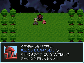 (↑悲劇の劇団。真ん中の鎧男が団長。)