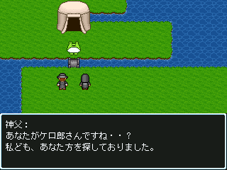 (↑カエルを誘う神父。あ、主人公はカエルです。)
