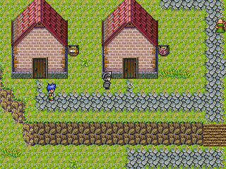 (↑最初の村。黒いマントが主人公である。村やダンジョンではこの大きさだが・・・)